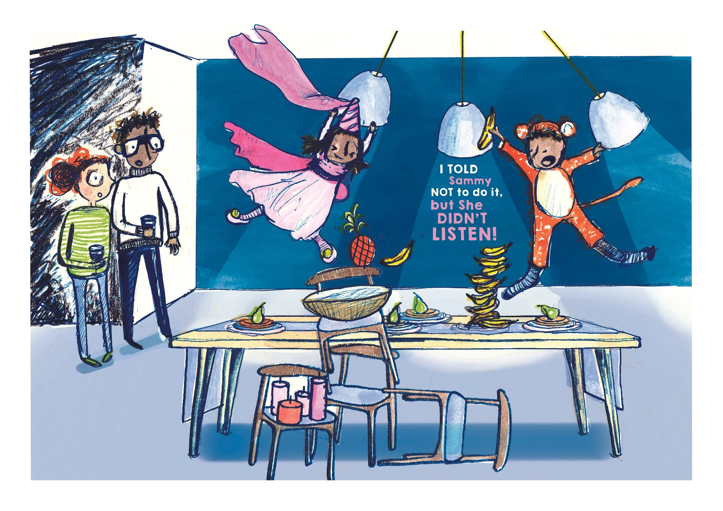 As well as illustrating the first book, my work involved helping define the voice of the main character and editing text.